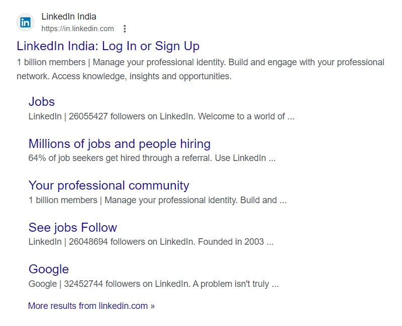 The LinkedIn meta description clearly describes what LinkedIn is all about and tells people what benefits they’ll have if they join the LinkedIn network.