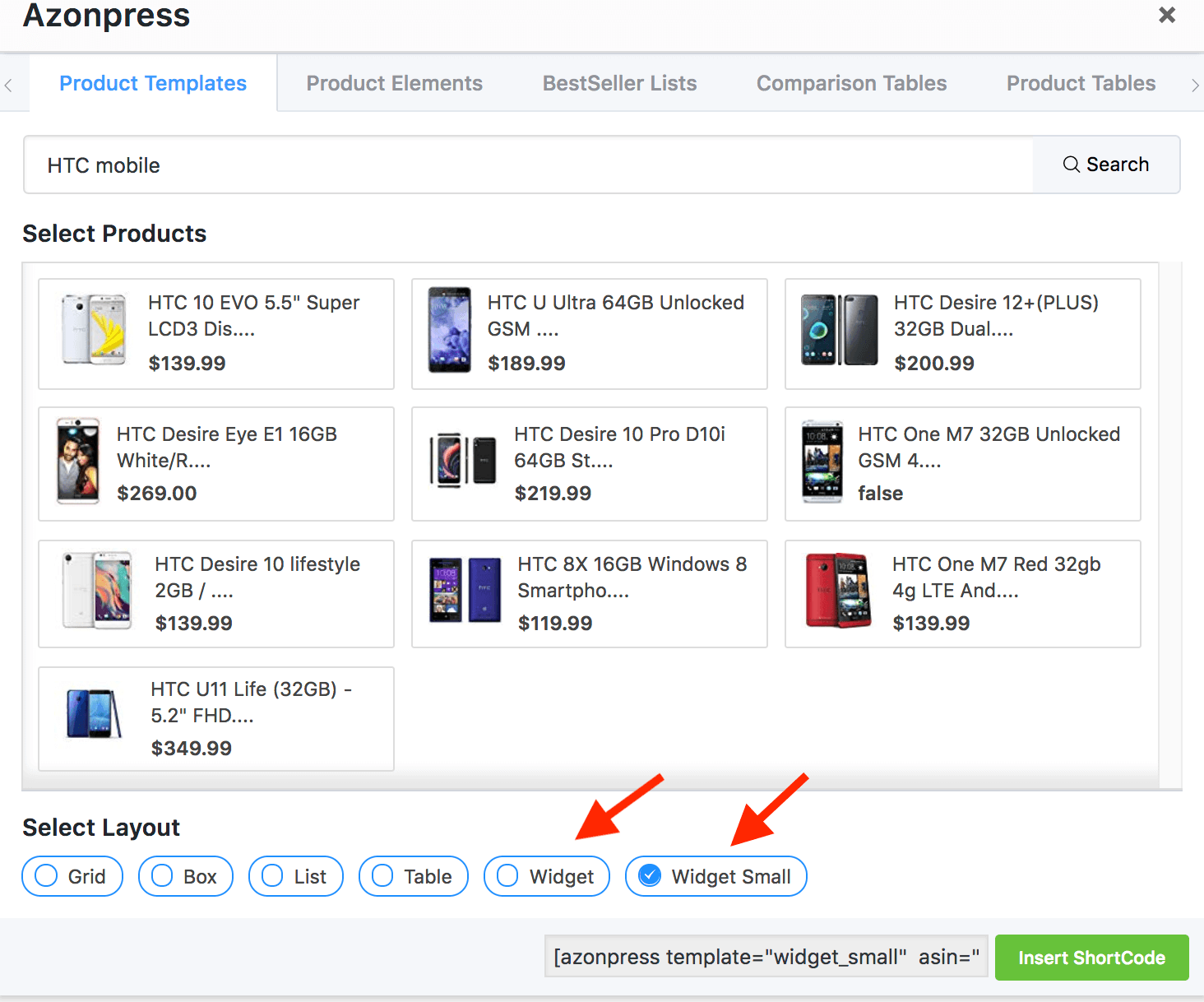 You can also display Widgets and Small Widgets using AzonPress while posting any product image on your site.