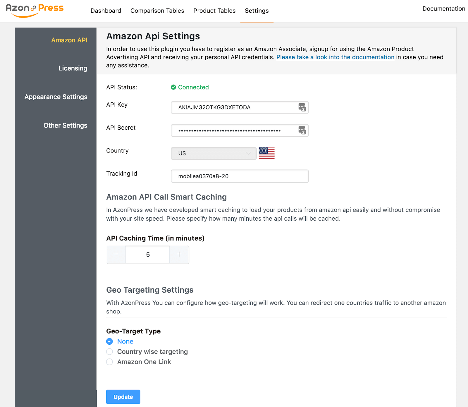 To integrate you just need to put the credentials of your Amazon affiliate account into AzonPress’s Amazon API Settings page. All the pages of the plugin interface are user-friendly that a novice user can easily operate the plugin.