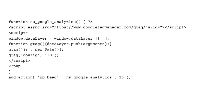 Another method to add Google Analytics to the WordPress website is by pasting an ID. The process is quite similar to the above method; however, instead of header.php, you just insert it through a function.