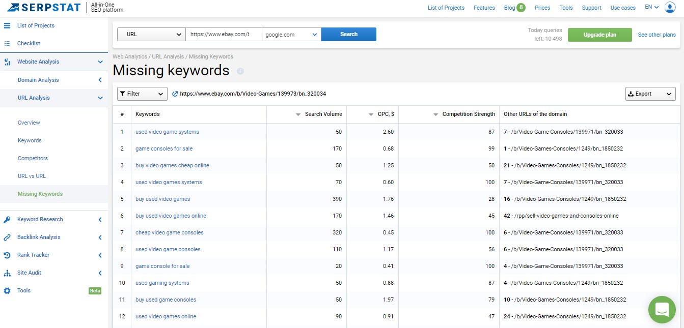 To do this, you may select keywords that ultimately describe your service with the help of any keyword tool you like: Wordtracker, Google Keywords tool or Serpstat, which is the first SEO platform offering an advanced keyword analysis feature.