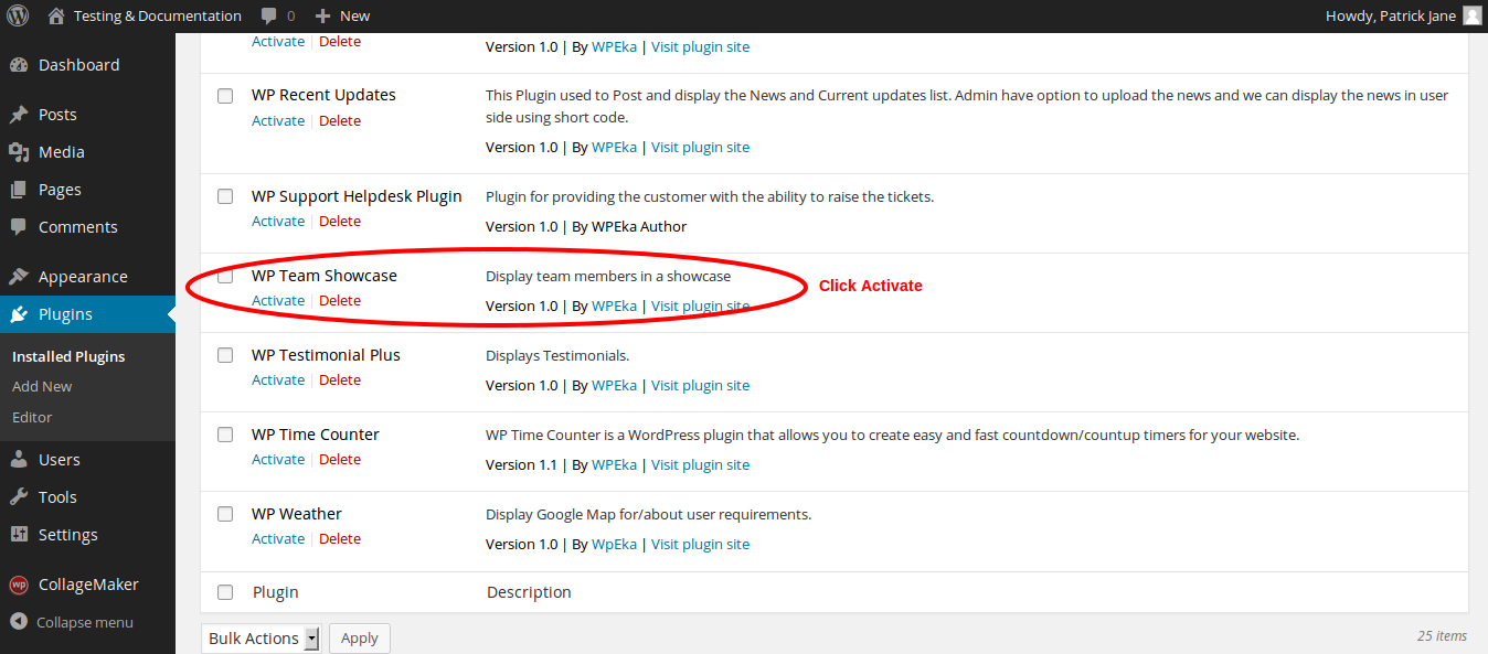 1. Download the wp-team-showcase.zip file & unzip to plugins folder located at /wordpress/wp-content/plugins