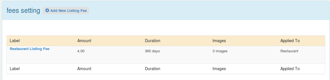 Go to WordPress Dashboard -> WP Business Listing -> Fees Setting & Click Add New Listing Fee.