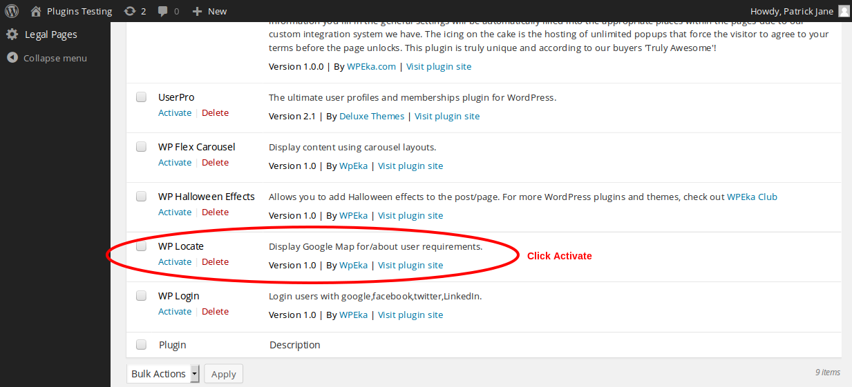 3. Activate WP Locate.