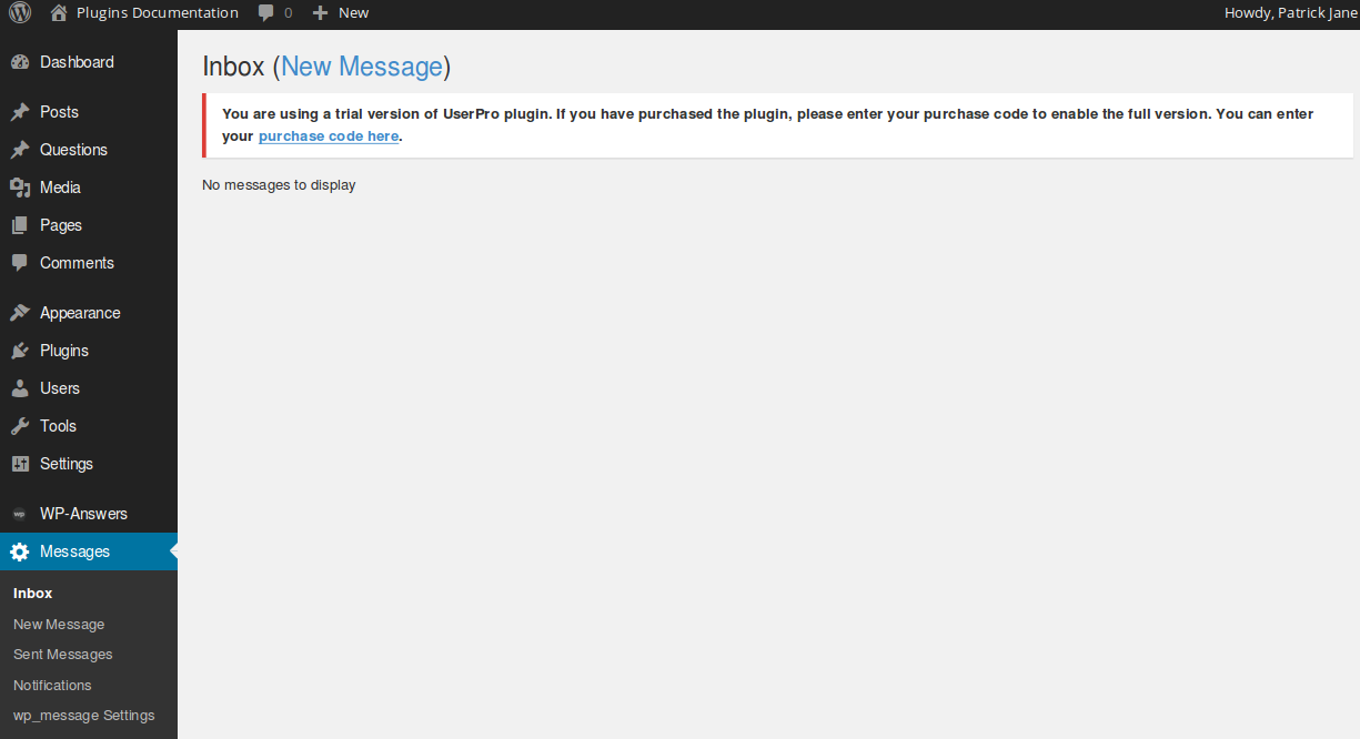How to use WP Message plugin