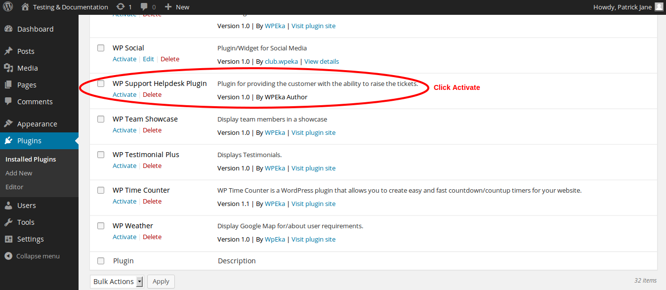 3. Activate WP Support Helpdesk.