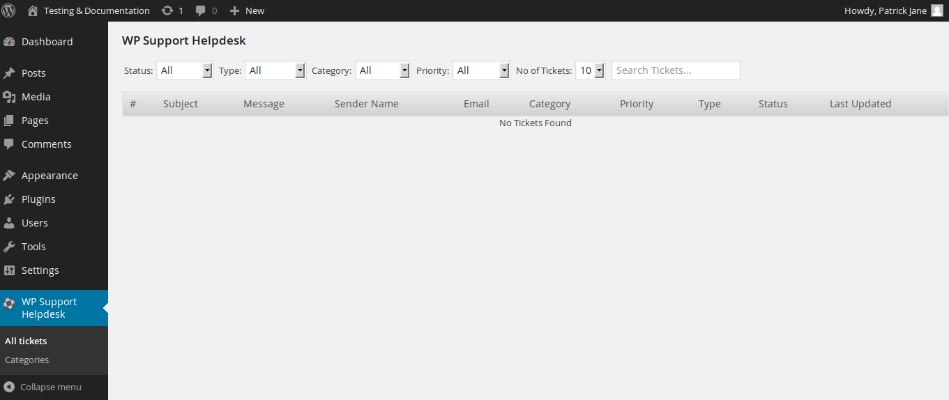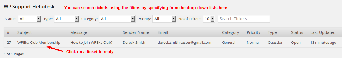 WP Support Helpdesk -> All Tickets