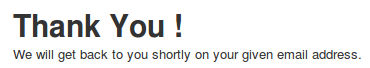 6. When a user successfully submits a question / raises a ticket, he/she will get a thank you message as follows (on the frontend) along with a mail that is sent to the specified email address.
