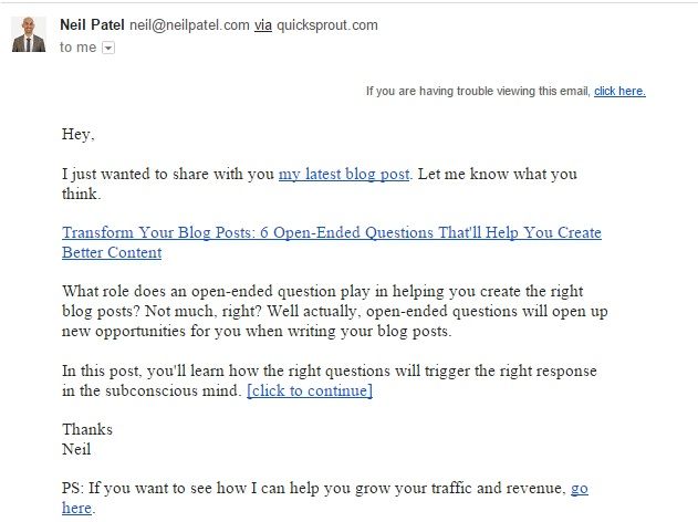 However, many smart marketers, like Neil Patel, have switched to a light-HTML format for their blog updates. Neil also has a list of tips for certain types of formatting to avoid in your email content, such as using the colour red, using too many symbols and too many links.