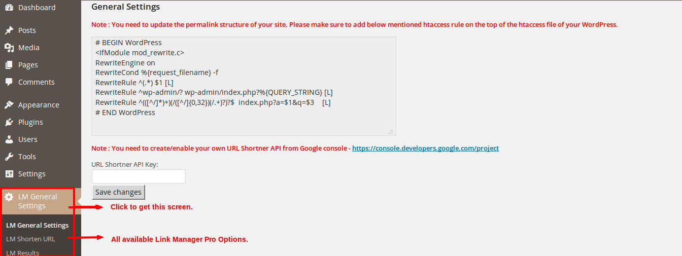 • To generate shorten URL, go to Dashboard -> LM General settings -> LM Shorten URL.