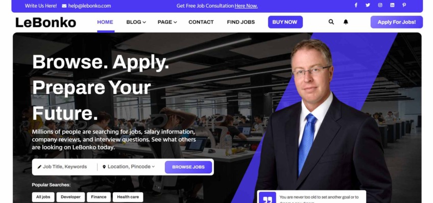 This one is an Elementor-based theme that is created for recruiting managers and companies. Eazy Recruitz can play a multipurpose role for other agencies as well. The theme features three creative homepage designs to choose from. These are easy to customize and edit. Also, you get Elementor page builder, which helps you drag and drop elements and layouts for an easy developmental process. Eazy Recruitz features modern, clean, pixel-perfect, and professional layouts that make your website stand apart from competitors.
