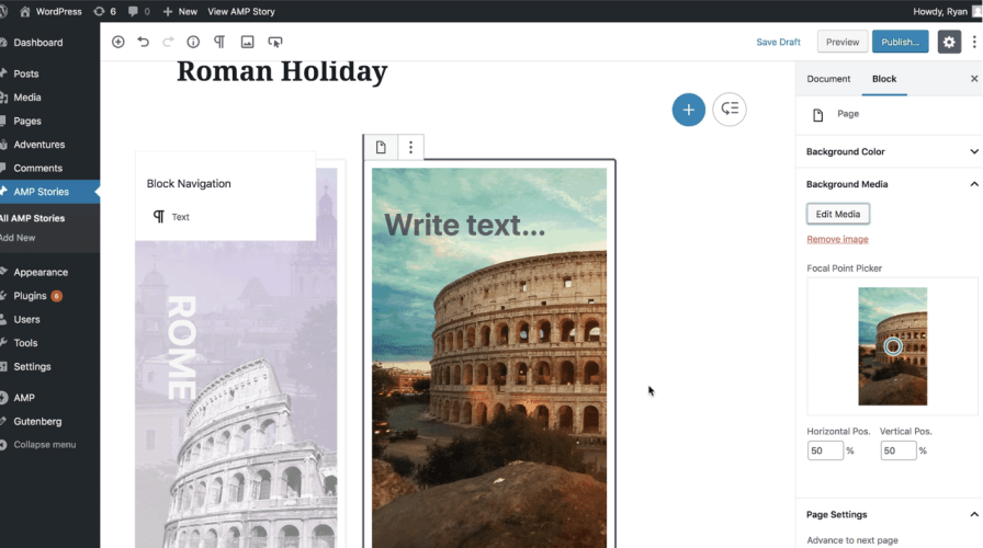 Support for creating AMP Stories in WordPress is the next major feature coming to the plugin. A pre-release of the AMP Stories editor is available in 1.2 alpha 1, which also requires the latest version of the Gutenberg plugin. It uses the Gutenberg editor to allow users to build AMP stories with rich media capabilities.