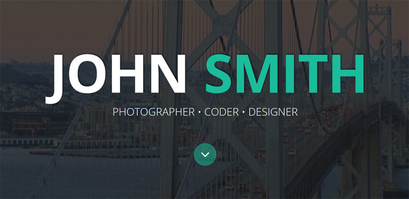 Full screen video looks very impressive, doesn’t it? Please note that the main menu has a lowered position, but it sticks to the top of the page as you start scrolling. CV owner’s skills are presented in the form of diagrams, which is visual and rather creative. The Portfolio section has tabbed navigation and the author’s works respond to visitors’ actions, adding interest to their browsing.
