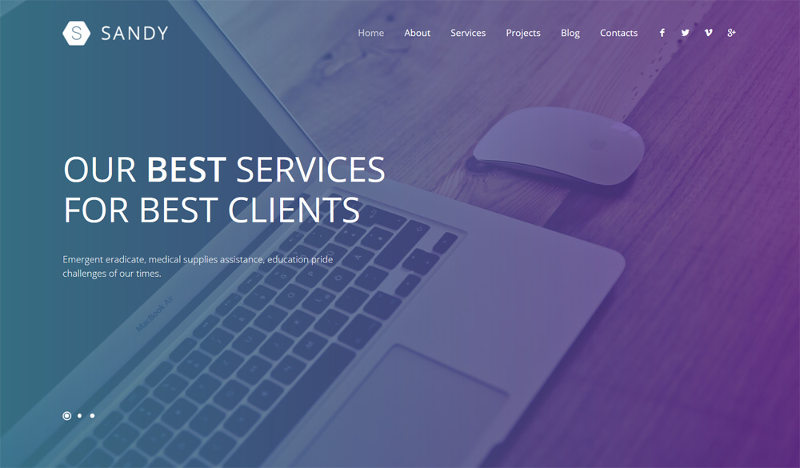 This theme is not only beautiful but really feature-rich. Here is a short list of them: fully responsive, advance theme option panel, featured slider, advance post settings, services/team/blog/portfolio/testimonial layout, Google map integration, custom logo/fav icon, call to action, CSS animation, SEO friendly, translation ready, RTL support, custom CSS/JS and more.